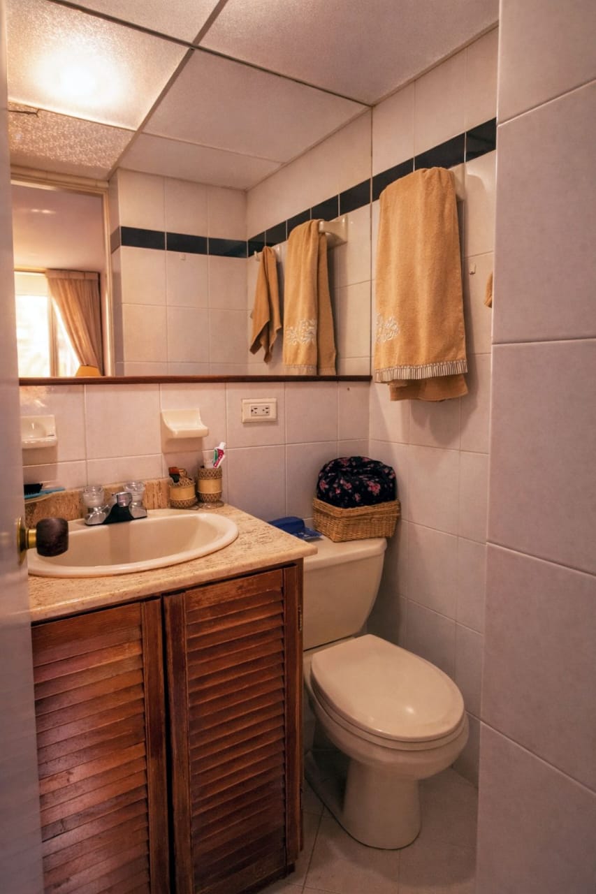 El apartamento dispone de tres habitaciones, todas con clóset amplio, ofreciendo gran capacidad de almacenamiento.